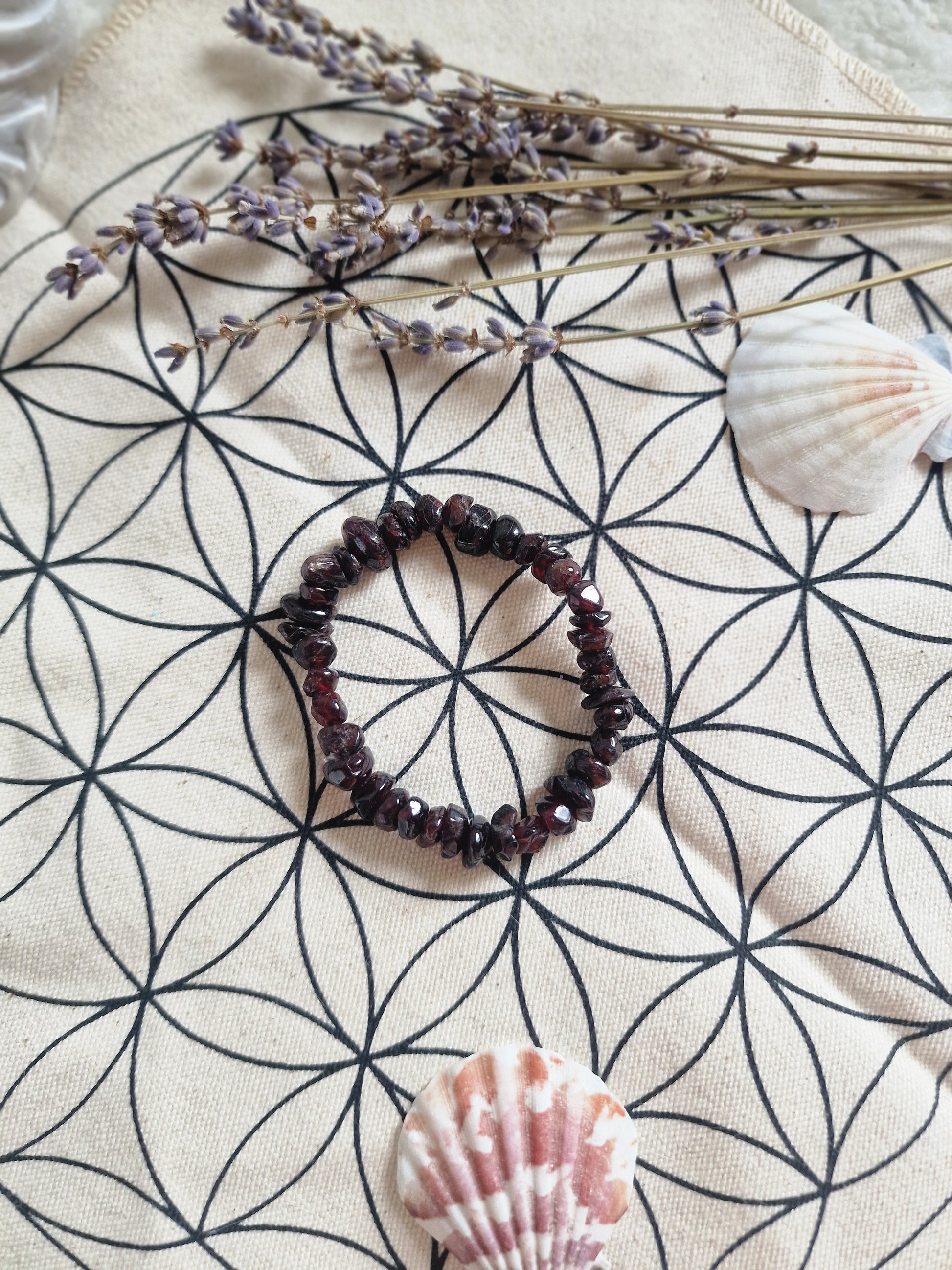 GRANATO: “pietra del coraggio” Aiuta ad uscire da quelle situazioni che sembrano senza via d'uscita. Promuove la fiducia in sé stessi, la forza di volontà e la gioia di vivere. Stimola lo sviluppo di nuove idee, rafforzando la capacità di tradurle in pratica, anche se gli altri sono ad esse ostili. Rafforza il potere di rigenerazione dell'organismo.