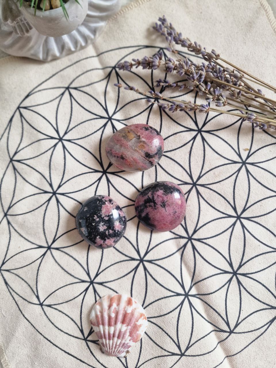 RODONITE: “pietra del sostegno morale”. Incrementa l’amore per sé stessi permettendo di comprendere e perdonare i torti, di risanare le ferite e di liberarsi dalle catene del dolore, della rabbia o del rancore. Contribuisce a portare pace e armonia dove c’è conflitto promuovendo la comprensione e l’amicizia. Permette di sviluppare la capacità di controllarsi nelle situazioni di crisi o di pericolo. Induce a raggiungere una maturità interiore imparando dalle proprie esperienze.