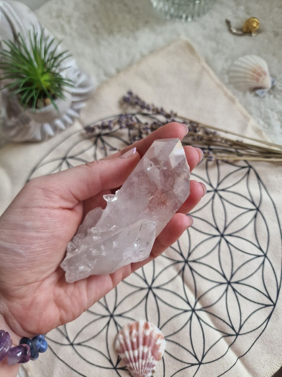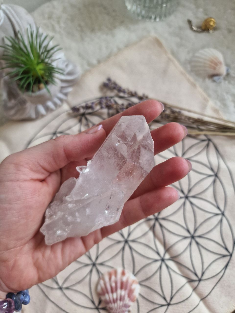 QUARZO IALINO "Re dei quarzi" Esalta e accresce le proprietà delle pietre che ne vengono in contatto; inoltre neutralizza le energie negative e amplifica quelle positive; rallenta il processo di invecchiamento e rivitalizza la mente. Sa dare energia o toglierla se è in eccesso. Rafforza notevolmente l'aura, ed è usato per attivare e allineare tutti i chakra, fornisce maggiore energia.