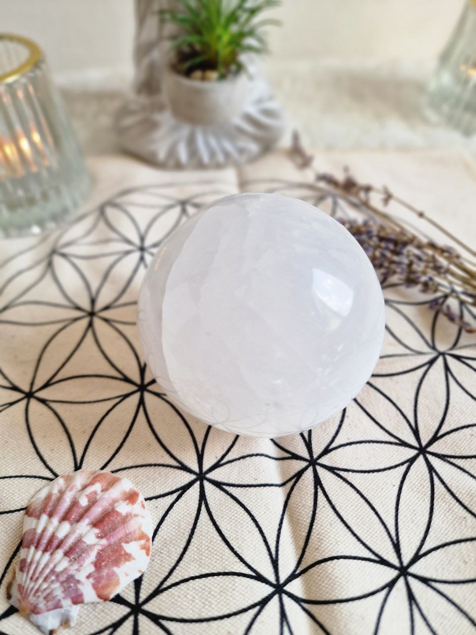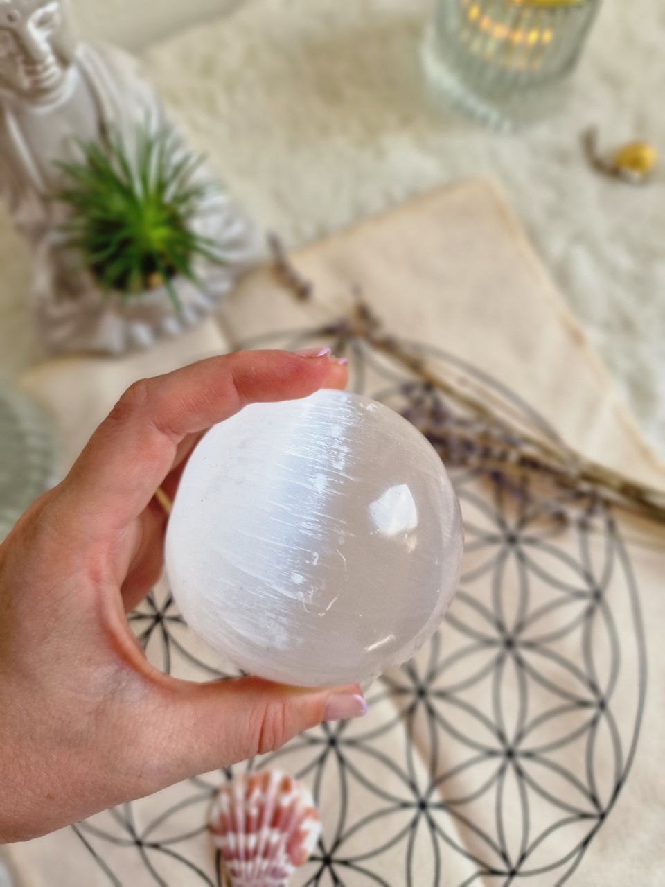 Le sfere di selenite, cristallizzate dal gesso, sono strumenti potenti per la meditazione grazie al loro alto valore energizzante. La loro forma rotonda crea un campo energetico armonico che aiuta a liberare da disturbi energetici, mentre la selenite irradia una forza positiva che purifica e raffina l’energia degli ambienti. Ispirata alla Dea greca della luna, Selene, questa pietra diffonde una luce delicata e calmante, ideale per favorire la tranquillità dell’anima e l’equilibrio interiore.