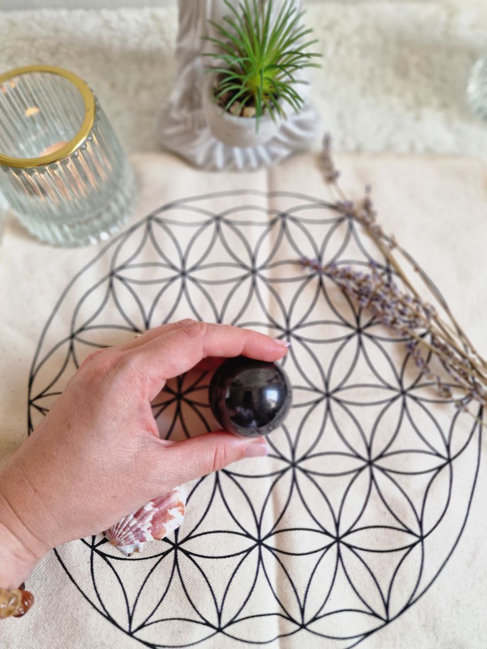 La sfera di SHUNGITE è una pietra che emana un’energia morbida e armoniosa, ideale per equilibrare gli ambienti e favorire una circolazione energetica delicata. Utilizzata in cristalloterapia, la Shungite, è nota per le sue proprietà di protezione dalle radiazioni elettromagnetiche emesse da dispositivi come computer, telefoni e televisori. Posizionata vicino a queste apparecchiature, contribuisce a creare una zona di protezione che supporta il rilassamento e lo stato meditativo.